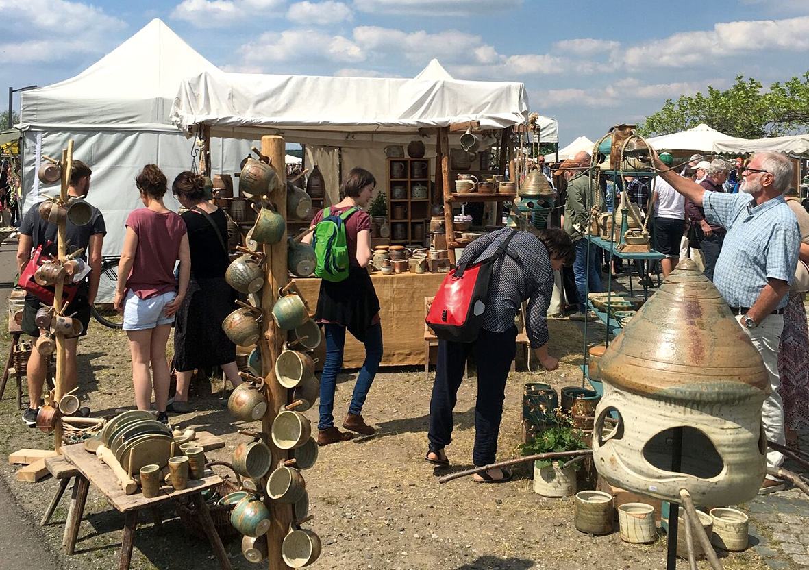 20 Jahre Töpfermarkt! Es kommen wieder 80 Töpfer und Kunsthandwerker aus ganz Deutschland, um ihre ausnahmslos selbst hergestellten Arbeiten zu verkaufen. Die Besucher finden bei den 70 Töpfern eine Riesenauswahl an Keramik, Gebrauchsgeschirr wie Tassen, Teller, Kannen – natürlich auf der Töpferscheibe gedreht, aber auch künstlerische Einzelobjekte für Haus und Garten in allen Formen und Farben. Verschiedene Brenntechniken machen das Töpferhandwerk aus: gebrannt im Elektroofen, Freibrand im Holzofen oder mit RAKU, einer alten japanischen Brenntechnik. Junge Porzellandesigner, ausgebildet auf der Burg Giebichenstein (Halle), präsentieren ihre Arbeiten, wunderschöne neue Formen und Ideen, ein Gewinn für das Keramikhandwerk. Unter den Kunsthandwerkern sind Korbflechter, Glasgestalter, Schmuckhersteller und es werden Holzarbeiten und Textilien angeboten. Wieder mit dabei der letzte Pinselmacher Deutschlands, Karl Dommel aus Bechhofen, der schon in Rente ist, aber unbedingt nach Markkleeberg kommen will, weil er hier ein dankbares Publikum für seine seltenen Pinsel gefunden hat. Es gibt Handwerksvorführungen wie Drehen an der Töpferscheibe, Drechseln und Korbflechten. Selbstherstellende Kunsthandwerker werden immer weniger, hier finden Sie noch echtes Handwerk. Der Markt ist an beiden Tagen von 10:00 bis 18:00 Uhr geöffnet, der Eintritt ist frei!