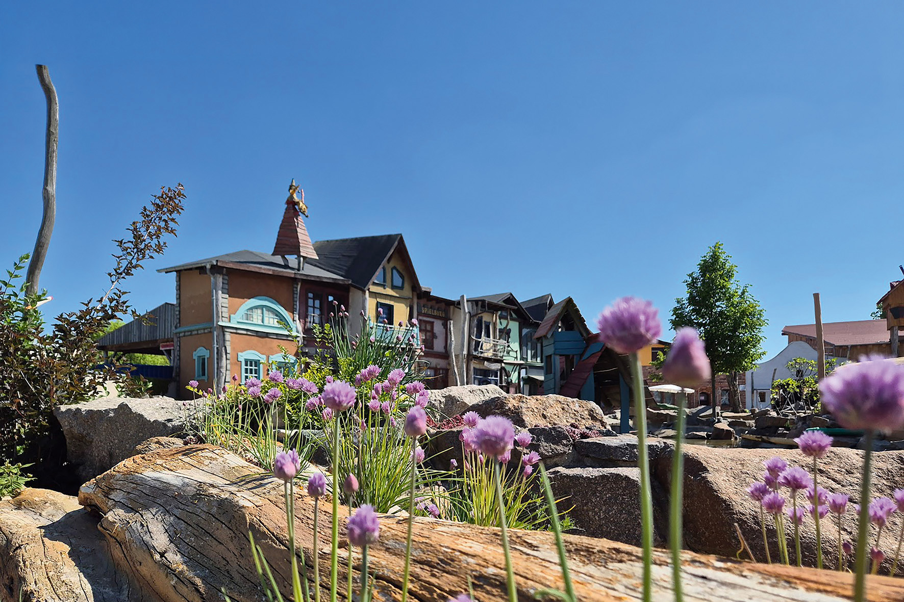 Kreative Kletter-, Spiel- und Erlebnisbereiche – gebaut aus urigem Robinienholz und eingeflochten in eine abwechslungsreiche grüne Umgebung – entlocken garantiert großes Staunen und eröffnen Spielmöglichkeiten in Hülle und Fülle. Idyllische Orte mit liebevollen Details, wie der bezaubernde Rosengarten oder die Forschertürme am See bieten wunderschöne An- und Ausblicke. Die Liebe zum kreativen Spiel und zum Detail spürt man an jeder Ecke in den rund 20 kleinen Themenbereichen.