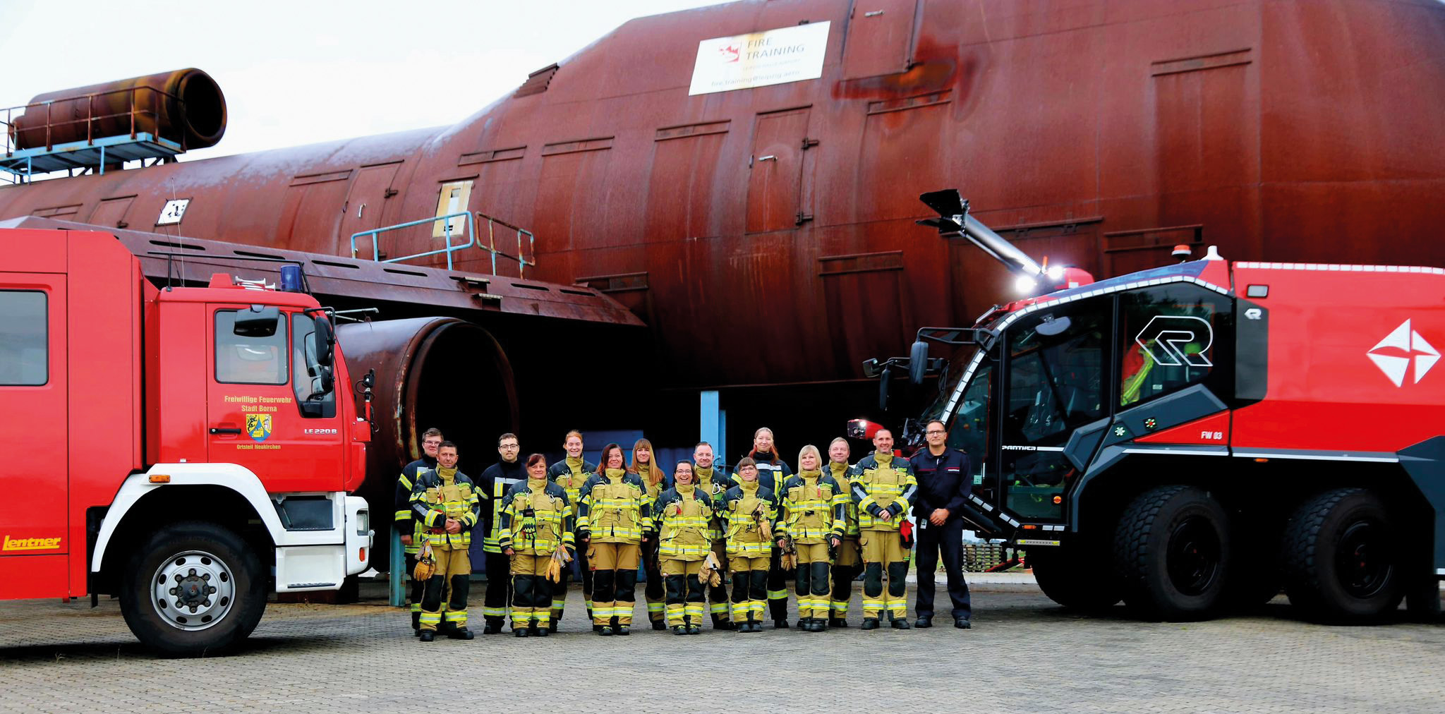 Am Freitag, den 26.09.2025 verlagerten die Kameraden und Kameradinnen der Feuerwehr Neukirchen ihren Dienst an den Leipzig-Halle-Airport. Nach einer interessanten Einweisung in die Arbeit der dort ansässigen Werkfeuerwehr wurden die Räumlichkeiten der Nordwache und vom Ausbildungszentrum Fire Training vorgestellt. Neben der Vorführung dreier Flugfeldlöschfahrzeuge (Panther) verschiedener Generationen konnten sich die Kameradinnen und Kameraden auch mit der dort verbauten Technik vertraut machen. Sehr informativ war ebenfalls die Begehung des Flugzeug- simulators (Boeing 747) mit dem verschiedenste Brände innerhalb und außerhalb der Maschine inszeniert werden können.
