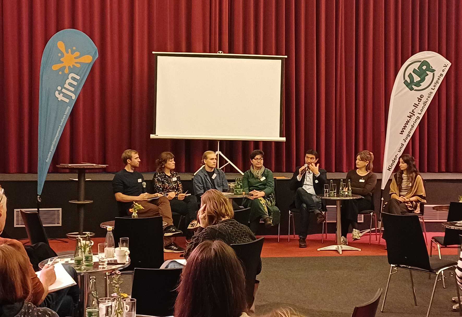 Podiumsdiskussion bei der Fachtagung „Jugendbeteiligung im Landkreis Leipzig“: Fachkräfte, politische Vertreterinnen und Vertreter sowie Jugendliche diskutieren gemeinsam über Wege erfolgreicher Jugendbeteiligung.