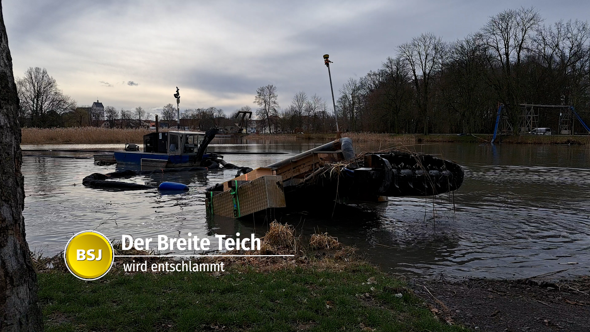 Wer in den letzten Tagen am Breiten Teich in Borna entlangkam, konnte es nicht übersehen - das Amphibienfahrzeug mit dessen Hilfe etwa 10.000 Kubikmeter Schlamm aus dem größten innerstädtischen Gewässer geholt werden sollen. Der Breite Teich wird entschlammt, wie der Fachmann sagt.