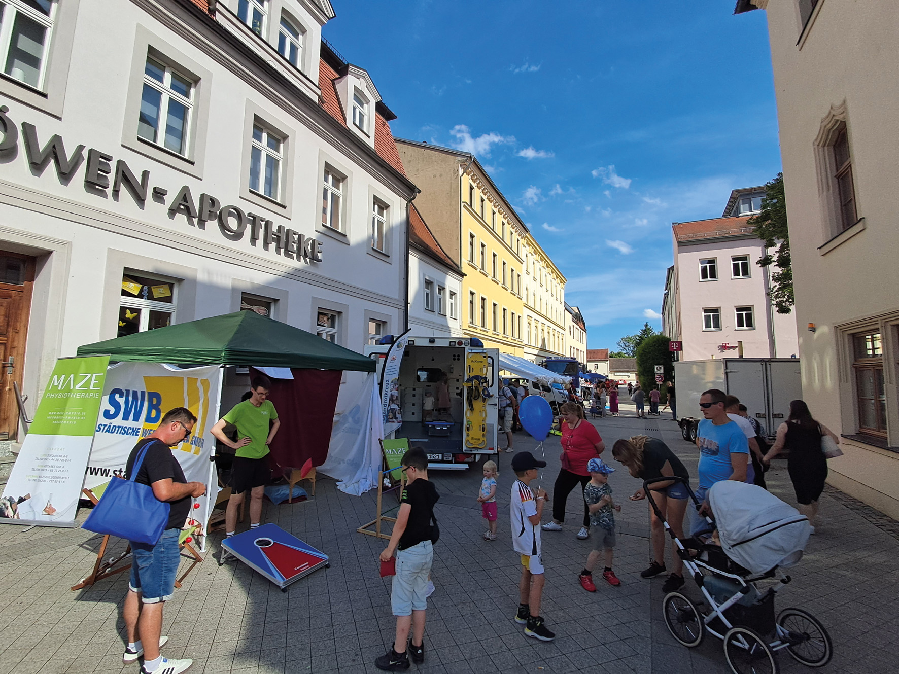 Vom 30. Mai bis 1. Juni 2025 fand bei sommerlich warmem Wetter unser Stadtfest statt. Zahlreiche Besucherinnen und Besucher zog es in die Innenstadt, um gemeinsam zu feiern, zu entdecken und mitzumachen. Ein besonderer Höhepunkt war am Samstag die beliebte Kinder- und Familienmitmachmeile in der Reichsstraße und Brauhausstraße. Über 35 Vereine und Unternehmen präsentierten sich mit vielfältigen Mitmachaktionen und Informationsständen – ein Angebot, das vor allem bei Familien großen Anklang fand. Ein herzliches Dankeschön gilt allen Beteiligten für ihr Engagement und ihre Kreativität! Am Sonntagmorgen begann der Tag mit einem ökumenischen Gottesdienst, der ebenfalls auf große Resonanz stieß. Direkt im Anschluss lockte der traditionelle Fassbieranstich mit dem Oberbürgermeister zahlreiche Gäste an, die sich gerne in die Warteschlange einreihten. Beim traditionellen Trödel- und Kreativmarkt konnte man an über 30 Ständen stöbern und shoppen. Großer Dank gilt dem Zoo Leipzig, der LVZ, dem RIFF Bad Lausick, dem Saurierpark Kleinwelka, dem Labyrinthehaus Altenburg, der Buchhandlung Kämpfner sowie Irmscher – Spiel und Kunst für die Bereitstellung der Preise für unser beliebtes Kinderstationsspiel. Ebenso danken wir unseren engagierten Vereinen und Unternehmen, die das Stadtfest mit ihrer Unterstützung möglich gemacht haben – insbesondere den Städtischen Werken Borna GmbH, der Bornaer Wohnbau- und Siedlungsgesellschaft mbH, FIEGE Logistik Stiftung & Co. KG, Die Länderbahn GmbH sowie AMB Automobile Borna GmbH.