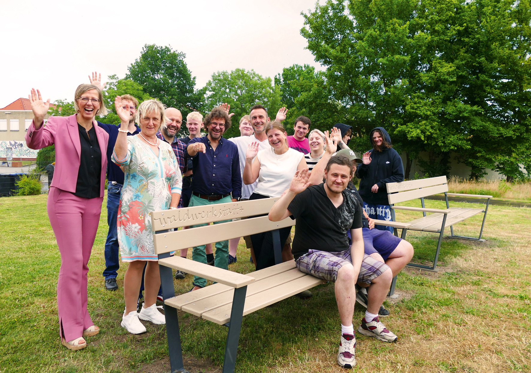 Das Besondere: Sie wurden in der WaldWerkStatt+ entworfen und gefertigt – einem Jugendberufshilfeprojekt der Diakonie Leipziger Land für Menschen ohne Schulabschluss, Ausbildungsplatz oder Job. „Nachdem wir um den Spielplatz Tische aufgebaut und Bäume gepflanzt hatten, fehlten noch die Bänke“, erklärte Ines Lüpfert, Sozialdezernentin und 2. Beigeordnete des Landkreises. Die Sitzgelegenheiten seien ein großes „Herzensanliegen“ gewesen. Für dessen Umsetzung habe man sich bewusst für die WaldWerkStatt+ entschieden, deren starkes Engagement am Einsatz für die Bänke ablesbar sei, sagte Jugendamtsleiterin Simone Rödl.