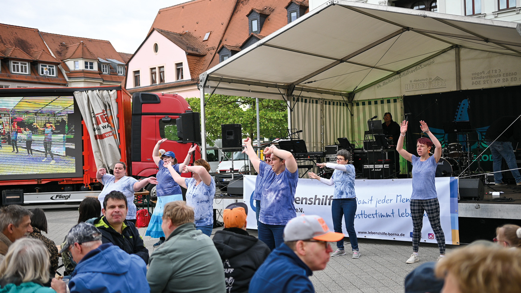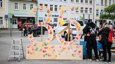 Der jährlich begangene Tag der Inklusion und der Europäische Protesttag zur Gleichstellung waren ein perfekter Rahmen für die Geburtstagsfeier der Lebenshilfe. Was passt besser als das Motto „Inklusion ist Teil der Lösung!“ Schließlich ist die Lebenshilfe ein Meilenstein für Inklusion und Teilhabe. Was 1990 mit der mutigen Initiative engagierter Eltern begann, hat sich zu einer festen Institution entwickelt, die für Unterstützung, Begegnung und Teilhabe steht. Jeder Besucher, der sich am 7. Mai auf dem Markt in Borna einfand, erlebte nicht nur einen Protesttag mit vielen guten Reden, sondern ein herrliches Geburtstagsfest mit wunderbaren Menschen und einem liebevollen Programm aus Musik & Tanz mit Auftritten von DJ, der inklusiven Band AnTon und der Schulband des Gymnasiums Borna. Kultur & Theater gehörten ebenso in das quirlige Programm: Das Geheime Theater begeisterte mit einer Stand-Up-Show und einem Walk-Act. Ab 12:00 Uhr wurde Linsensuppe aus der Gulaschkanone serviert – ein kulinarischer Genuss für alle Besucher. Neben dem hervorragenden Bühnenprogramm hatten sich noch Informationsstände auf dem Markt drapiert. Verschiedene Organisationen, wie die DRK-Werkstätten Geithain und der Panitzscher Hofladen der Lindenwerkstätten Leipzig präsentierten ihre Arbeit und luden zum Austausch ein. Ein herzliches Dankeschön an alle, die diesen Tag möglich gemacht haben – sei es durch Organisation, Teilnahme oder Unterstützung. Engagement zeigt, dass wir gemeinsam viel bewegen können. Stellvertretend geht dieses Danke an den Geschäftsführer der Lebenshilfe Christian Groh, der Vorsitzenden Eugenie Lolies, den Stellv. Vorsitzenden Hendrik Franke, der Gleichstellungsbeauftragten Katy Schlosser, Landrat Henry Graichen. Lasst uns weiterhin gemeinsam für eine inklusive Gesellschaft eintreten, in der jeder Mensch – unabhängig von Fähigkeiten oder Beeinträchtigungen – seinen Platz hat.
