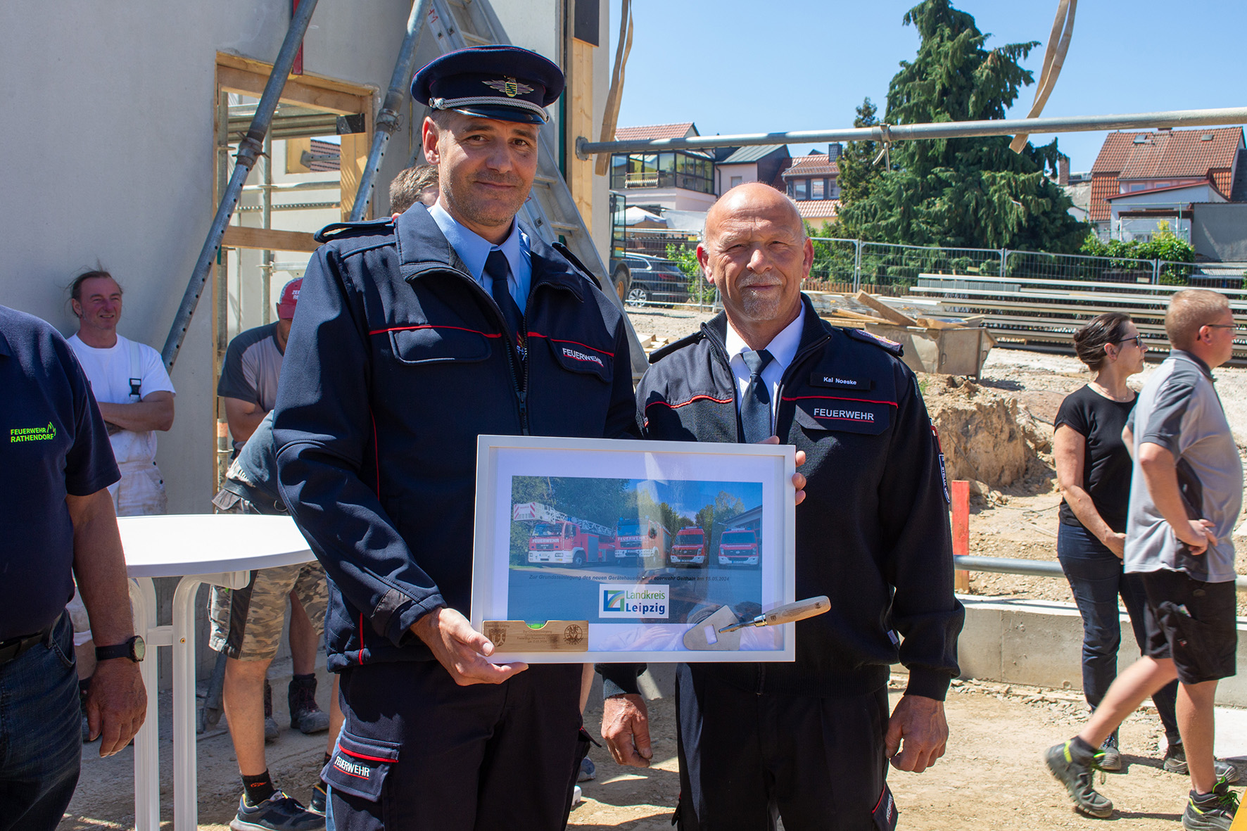 Neben dem Landrat, Herrn Henry Graichen, dem Landtagsabgeordneten der CDU, Herrn Georg-Ludwig von Breitenbuch, dem stellvertretenden Kreisbrandmeister, Herrn Kai Noeske, dem Stadtwehrleiter, Herrn Marco Christen und Vertretern der Baufirmen waren Kameradinnen und Kameraden der Freiwilligen Feuerwehren Geithain, Ossa, Rathendorf, Narsdorf und Niedergräfenhain sowie Stadträte und Bürger anwesend.