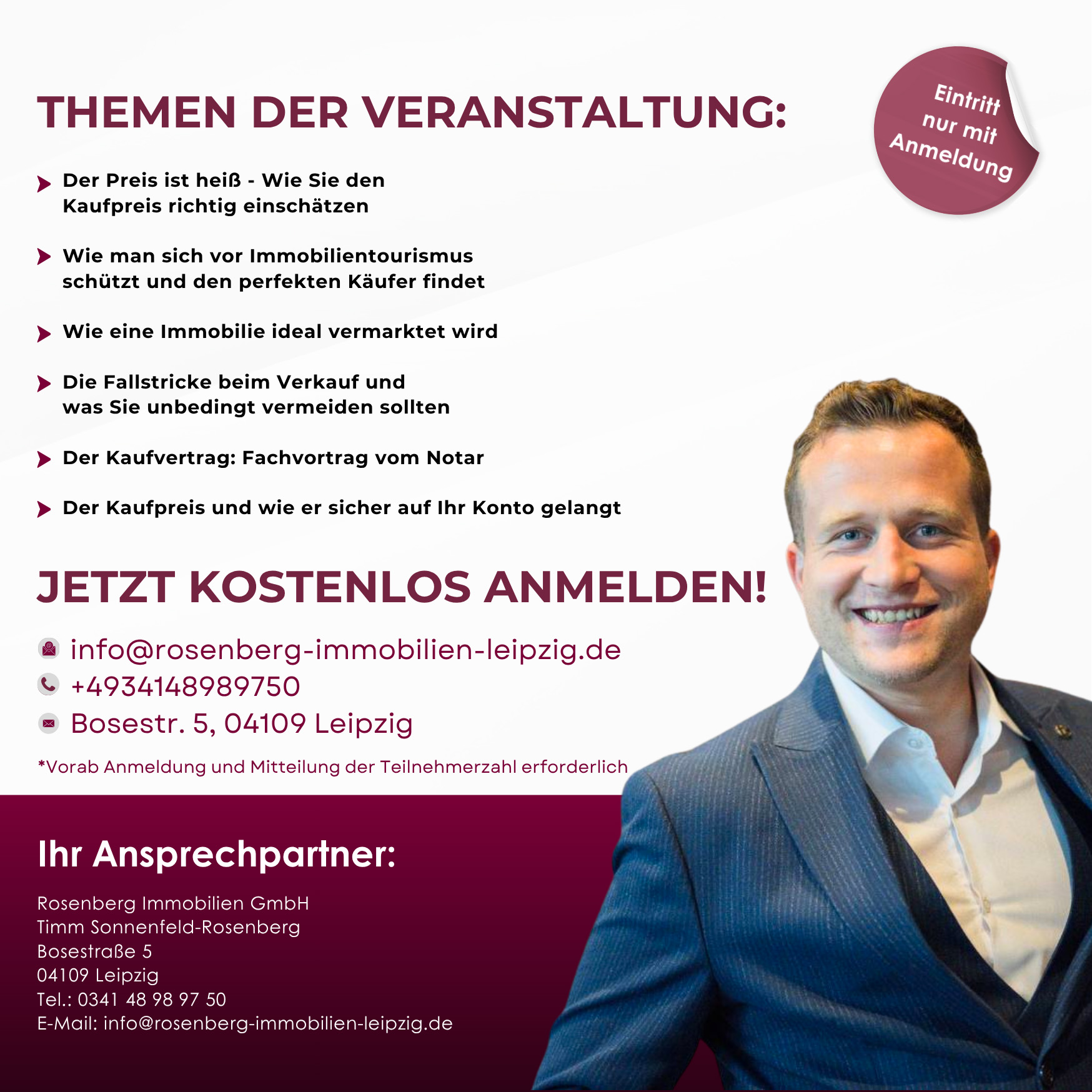 Nutzen Sie die Gelegenheit, wertvolles Wissen aus erster Hand zu erhalten und typische Fehler zu vermeiden.