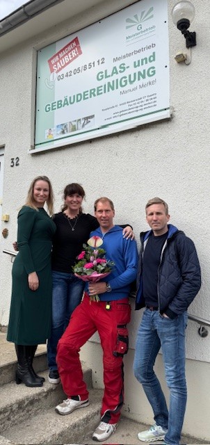Seit 35 Jahren sorgt das Unternehmen Glas- und Gebäudereinigung Manuel Merkel für Sauberkeit, Verlässlichkeit und höchste Qualität. Aus diesem Anlass besuchte die Bürgermeisterin zusammen mit dem Fachbereichsleiter III.2 Abteilung Städtische Dienste, Herrn Bastian Beck das Unternehmen, um persönlich zum Jubiläum zu gratulieren. Es war uns ein besonderes Anliegen, das große Engagement des Teams und die langjährige, vertrauensvolle Zusammenarbeit zu würdigen, denn 35 Jahre erfolgreiche Firmengeschichte stehen für Verlässlichkeit und großen unternehmerischen Einsatz, wofür wir dem Unternehmen herzlich danken möchten. Das Unternehmen Merkel ist im Familienbetrieb nicht nur ein verlässlicher Dienstleister, sondern auch ein wichtiger Arbeitgeber und Partner für viele Betriebe und Einrichtungen in der Region. Gerade dieser wichtige Beitrag zur regionalen Wirtschaftsstruktur ist unerlässlich und von großer Bedeutung. Wir freuen uns auf viele weitere gemeinsame Projekte und wünschen dem Unternehmen im Namen der Stadt weiterhin viel Erfolg für die kommenden Geschäftsjahre, zufriedene Kunden und immer ein gutes Händchen bei allen Entscheidungen.