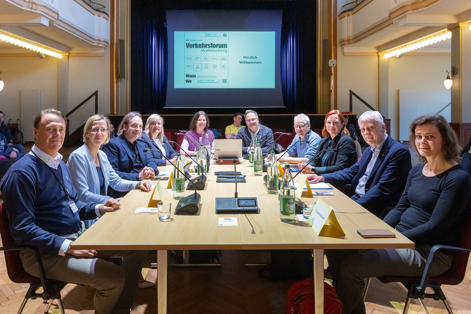 Alle Verkehrsträger, die in und für uns Markkleeberger ihre Dienste erbringen, waren eingeladen und auch unserer Einladung gefolgt. Es war das erste Mal, dass alle Partner gleichzeitig an einem Tisch saßen und sich gemeinsam zur aktuellen und künftigen Zu- und auch Missständen in der Verkehrssituation im Stadtgebiet stellten. Gesprächspartner waren Vertreter der LVB, des MDV, des Regionalbus Leipzig, des Zweckverbandes Nahverkehr Leipzig und des ADFC. Darüber hinaus standen der Oberbürgermeister und die Beigeordnete des Landkreises Leipzig sowie zwei Unternehmen, die die Markkleeberger Nachhaltigkeitsstrategie und das Radverkehrskonzept erarbeitet haben, Rede und Antwort.