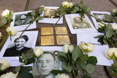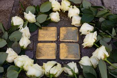 Nun kamen in Leipzig vor der Seeburgstraße 26 vier neue Steine hinzu, die an Berko, Lea, Isaak und Rosa Jamschon erinnern. Sie wurden am 10. April 2025 feierlich verlegt.
