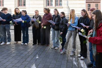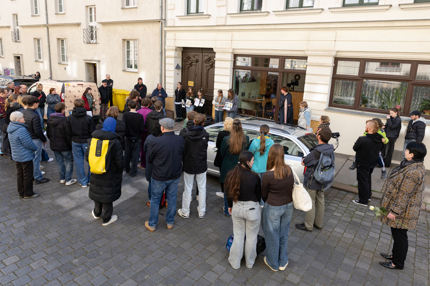 Die Verlegung der Stolpersteine erfolgte durch die AG Spurensuche in Zusammenarbeit mit Achim Beier vom Archiv Bürgerbewegung Leipzig e. V. Finanziert wurden sie durch liebe Menschen aus dem Umfeld der Schule und der AG. Sie übernahmen auch die Patenschaft der Steine.