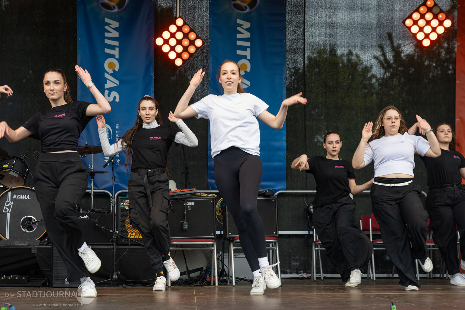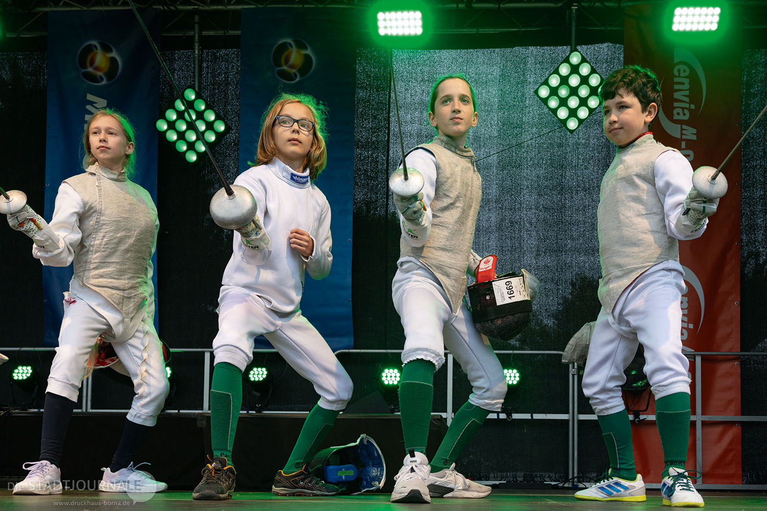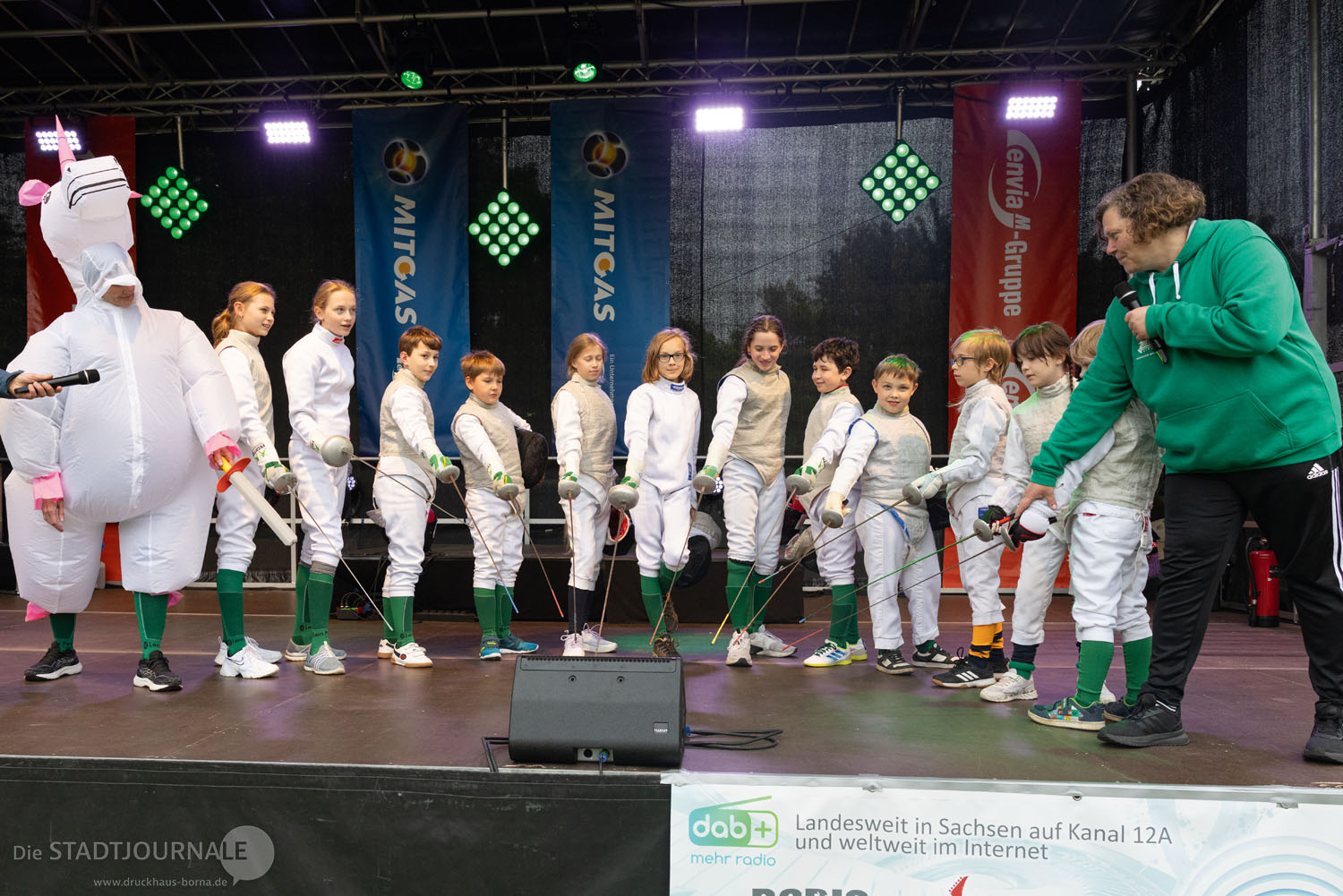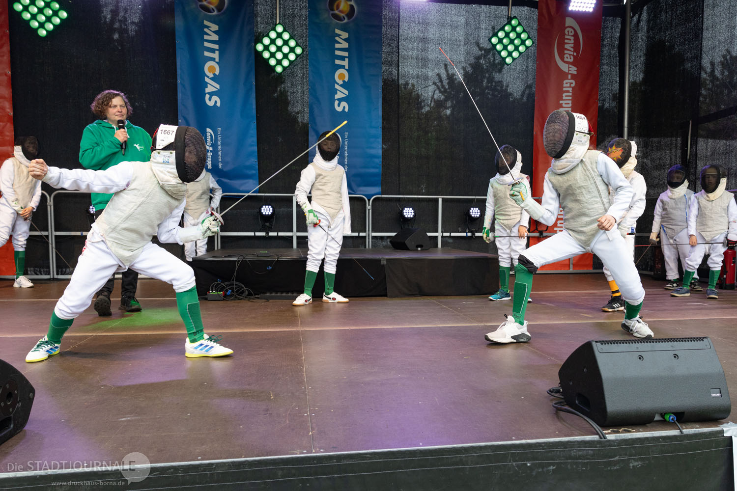 - Rathausplatzbühne mit der Tanzeria, Rathauscombo und den Fechtern des TV Markkleeberg
