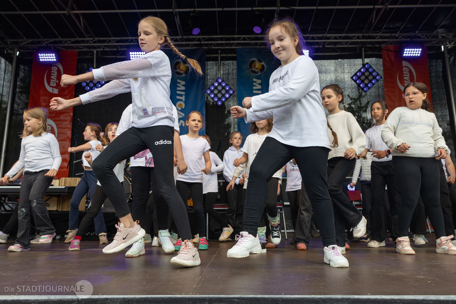 - Bühnenprogramm mit dem mcc, dem Kaosclown, den Neuseenland-Volleys, dem Stadtfanfarenzug und der Tanzschule Oliver & Tina