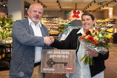 Seit Donnerstag, 8. Mai 2025, ist der Nahkauf-Markt in der Hauptstraße 229 / 231 wieder geöffnet. Inhaber Thomas Sachse und Filialleiterin Sandy Beckert freuten sich auf ihre Kunden, zahlreiche standen bereits vor dem offiziellen Startschuss um Punkt 10.00 Uhr Schlange, um ihre Einkäufe in den neuen Räumlichkeiten zu erledigen. Neben dem 920 Quadratmeter großen Supermarkt gibt es auch eine Bäckerei mit Café. Im Gebäude selbst wird noch gearbeitet: Der SB-Bereich der Sparkasse und ein Sanitätshaus werden bis zum Sommer eröffnet. Dann beginnt auch die Vermarktung der 16 Wohneinheiten; die ersten Mieter können im Spätsommer einziehen.
