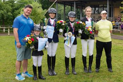 Insgesamt 92 junge Reiter:innen gingen an den Start, darunter 62, die noch keine 18 Jahre alt sind. Besonders schön: Auch vier Kinder ohne Vereinszugehörigkeit konnten erste Turnierluft schnuppern – ganz im Sinne des inklusiven Breitensports. Unterstützt wurde das Turnier von acht Richterinnen, zehn Übungsleiterinnen und rund 300 Zuschauer:innen, die den Tag über für Stimmung sorgten. Und das nicht allein! Auch prominente Gäste wie Vertreter:innen des Landessportbundes, des Kreissportbundes, des PLL sowie der Oberbürgermeister Karsten Schütze höchstpersönlich ließen es sich nicht nehmen, vorbeizuschauen. Unsere treuen Sponsor:innen durften da natürlich auch nicht fehlen – danke, dass ihr jedes Jahr so tatkräftig mit unterstützt!