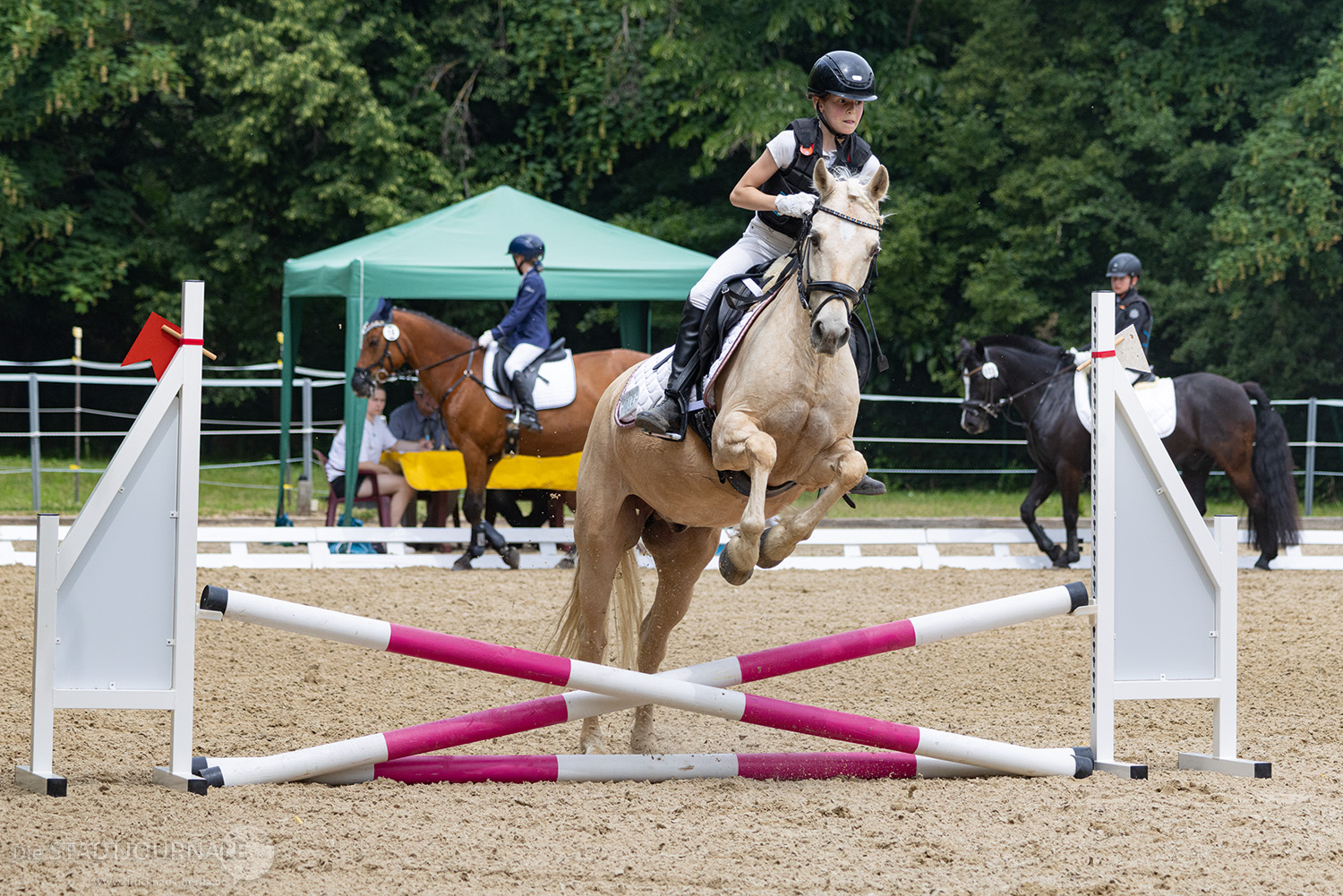 Sportlich wurde einiges geboten: Acht gerittene Prüfungen, darunter zwei heiß umkämpfte Geschicklichkeitsprüfungen. Dabei erstmals ein „Jump and Run“, der für Begeisterung bei Publikum und Teilnehmenden sorgte – und für den einen oder anderen Sprint in Reithose. Dressurfans kamen bei drei Prüfungen auf ihre Kosten, ebenso die Springbegeisterten in zwei unterschiedlichen Altersklassen. Theorieprüfungen und die Vorstellung an der Hand ergänzten das Repertoire – und für unsere kleinsten Reiter:innen gab es natürlich wieder den Führzügelwettbewerb.