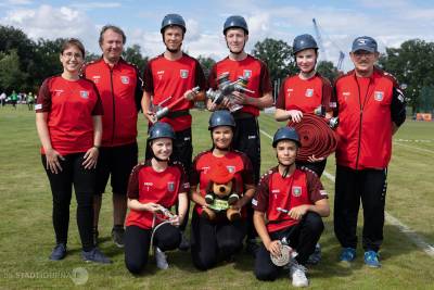 Mit dabei waren Athleten aus dem Landkreis Leipzig, darunter das Frauenteam aus Markranstädt, das in der Disziplin „Löschangriff nass“ antrat. Dabei musste eine Pumpe an ein Wasserreservoir angeschlossen und gleichzeitig ein Schlauchsystem aufgebaut werden, um das Wasser ans andere Ende des Sportplatzes zu bringen. Das Siegerteam brauchte nicht mal 21 Sekunden dafür!