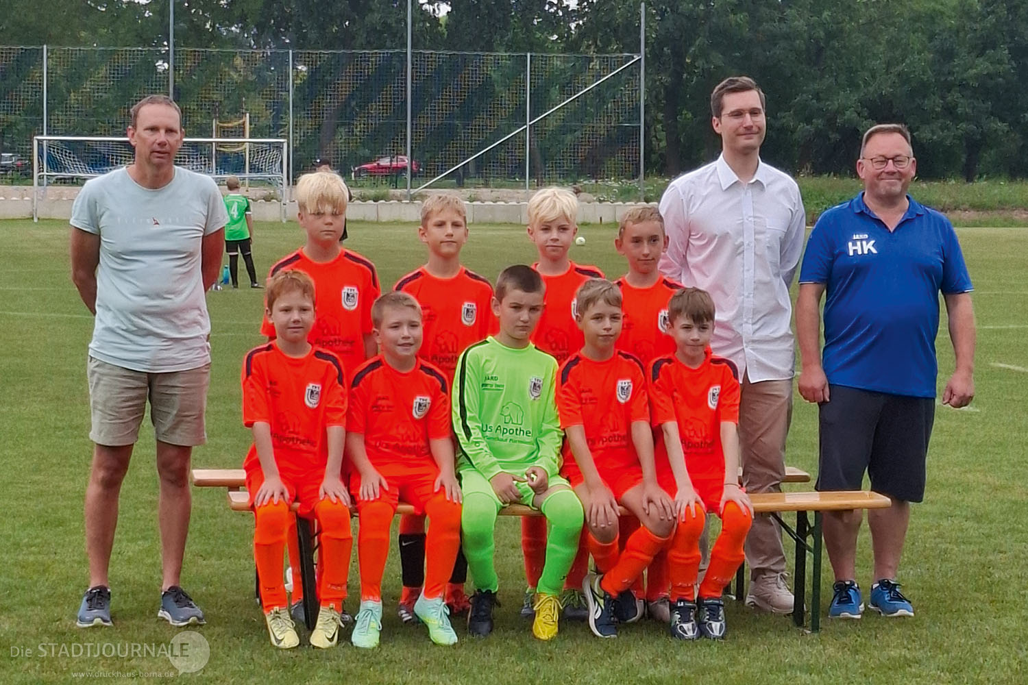 Wie schon erwähnt, spielte das Wetter super mit, die Sonne reduzierte ihre Leistung selbstständig auf Wohlfühltemperatur, und der Regen blieb aus. Unsere D-Junioren starteten um 9.00 Uhr erfolgreich mit dem Pokalspiel. Das angesetzte Fotoshooting mit dem Fotostudio Fotofonie aus Markkleeberg für alle Abteilungen endete mit einem Foto des Gesamtvereins. An der Teilnehmerzahl für diese Aktion muss allerdings noch gearbeitet werden. Ab 11.00 Uhr startete unser E-Junioren-Turnier, der 1. Urs Apotheken Cup, mit acht Mannschaften.