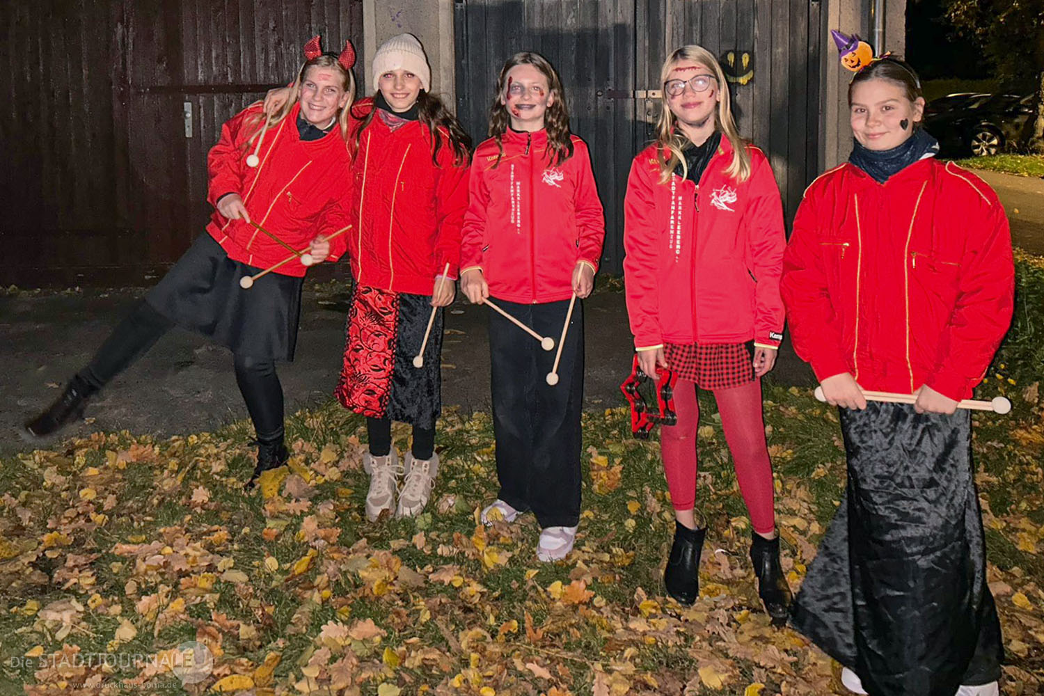 Es war seltsam. Zur gleichen Zeit begannen auch unsere Auftritte in den Kindergärten bei den Lampionumzügen. Der Fanfarenzug begleitete die Umzüge musikalisch. Dabei sind immer viele Kinder, die stolz ihre zum Teil selbst gebastelten Laternen präsentieren. Diese Auftritte sind immer etwas ganz Besonderes. Hier darf auch unsere Löwenbande mitwirken. Sie kamen verkleidet als Teufel oder Vampire.