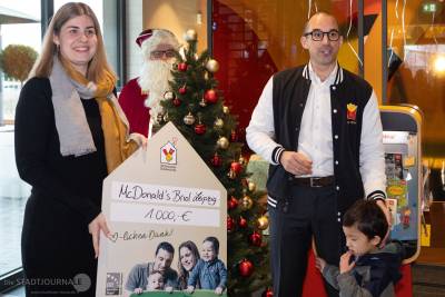 Zum Eröffnungstag übergab Briol außerdem einen Scheck über 1.000 Euro an Julia Merkel vom Ronald-McDonald-Haus Leipzig, das Familien schwer kranker Kinder unterstützt.