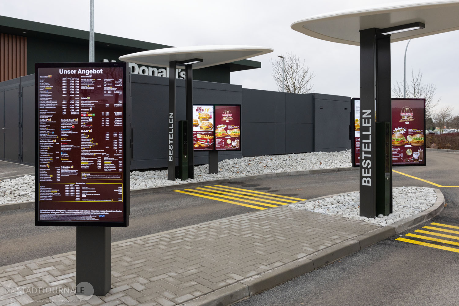 Der Bau des modernen Restaurants dauerte nur knapp drei Monate: Am 21. August diesen Jahres erfolgte der erste Spatenstich. Nachhaltigkeit wird hier großgeschrieben: So wurde auf dem Dach eine Solaranlage installiert, der Kinderspielplatz besteht aus Recyclingmaterial und an speziellen Recyclingstationen wird der Müll getrennt. Im Innenbereich finden 108 Gäste Platz, auf der Außenterrasse weitere 64. Ein zweispuriger McDrive, Pick-up-Parkplätze und zwei Schnellladesäulen für Elektroautos ergänzen das Angebot.