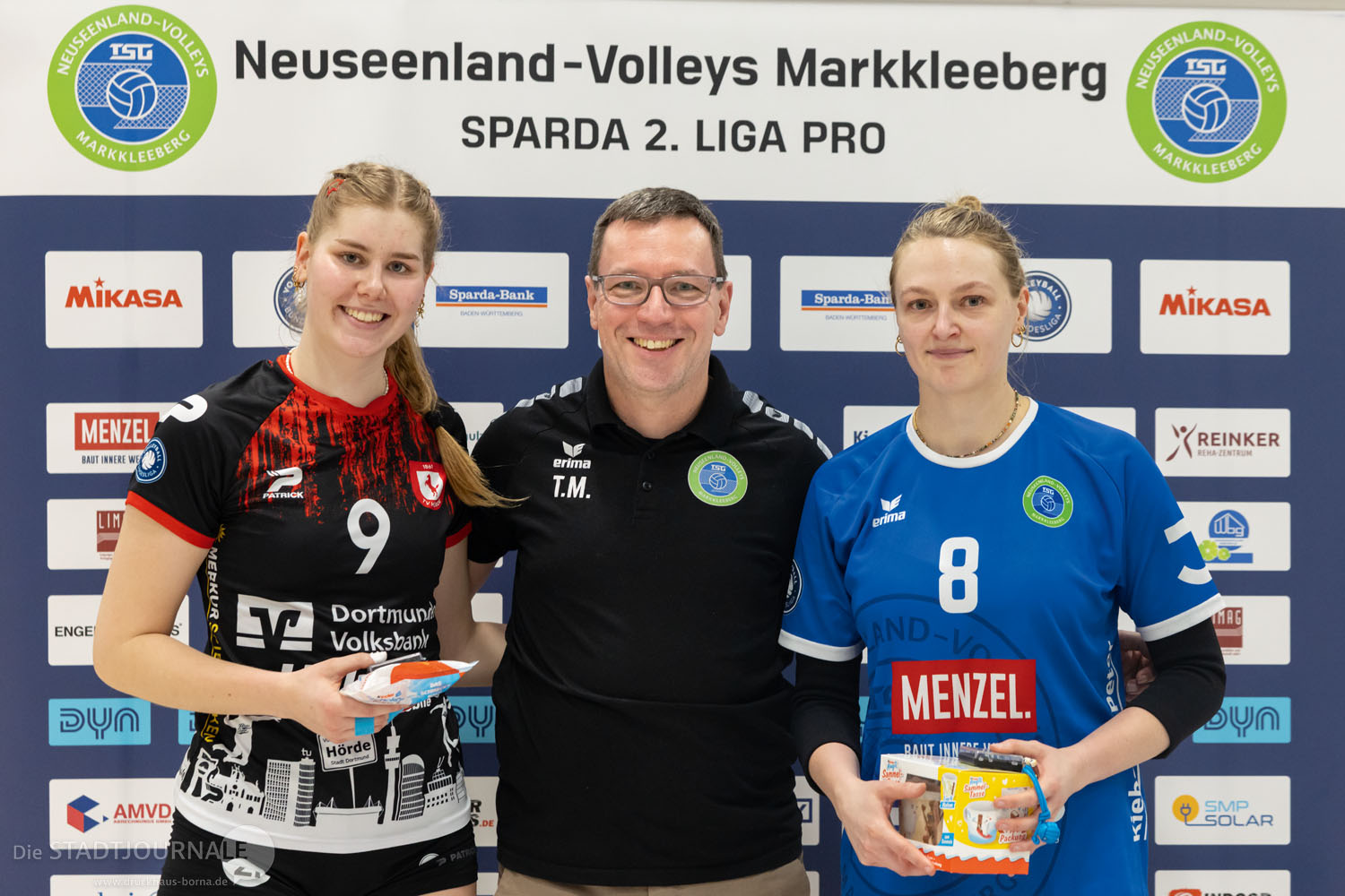 Am Abend empfingen dann die Neuseenland-Volleys Markkleeberg in der Sparda 2. Liga pro den TV Hörde. Bekanntlich haben sich die Gäste für einen freiwilligen Abstieg zurück in die 2. Bundesliga Nord entschieden. Aber sie geben sich kämpferisch: „Wir wollen die Saison noch genießen und auf einem Nicht-Abstiegsplatz abschließen, das ist unser Ziel“. Und tatsächlich haben sie seit der Bekanntgabe des Rückzugs Ende Januar überraschend gute Spiele abgeliefert, verloren sowohl in Grimma als auch in Dresden nur 2:3 und bezwangen Düsseldorf daheim mit 3:1. Die beiden letzten Spiele gingen dann allerdings relativ klar verloren (in Leverkusen 0:3 und daheim gegen Oythe 1:3), der Nichtabstiegsplatz 12 (auf dem aktuell unsere Mädels stehen) ist also für sie schon ein Stück weit weg, aber noch nicht ganz außer Reichweite. Insoweit war klar, dass sie bemüht sein würden, den 5-Punkte-Rückstand auf unsere Mädels zu verkürzen. Aber wenn die so aufspielen wie zuletzt, sollten sie das verhindern und bestenfalls ihrerseits drei Punkte holen können, zumal sie sich bestimmt auch daran erinnern, wie man das Team aus dem Dortmunder Stadtteil bezwingen kann, wo ja im Dezember ein 3:2-Auswärtssieg gelungen war.
