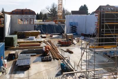 Bereits in vollem Gange ist der Betonrohbau der neuen Sporthalle. Die neue Mensa und eine Terrasse werden anschließend auf deren Dach in Holzbauweise entstehen. Die Fertigstellung der Sporthalle und Mensa ist nach den Winterferien 2027 geplant.