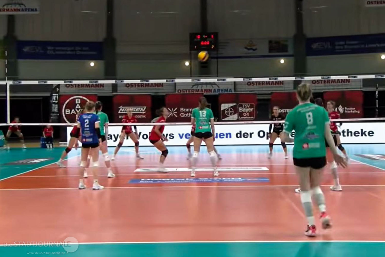 Zu ihrem vorletzten Auswärtsspiel mussten die Neuseenland-Volleys Markkleeberg nochmal auf weite Reise gen Westen gehen, wo die ligaerfahrenen BayerVolleys Leverkusen auf sie warteten. Als Tabellensiebente mit 19 Punkten Vorsprung auf unsere Mädels gingen die Gastgeberinnen als Favorit in das Spiel und konnten zudem von der Tabellensituation her quasi tiefenentspannt auflaufen. Anders unsere Volleys, die um die dringende Notwendigkeit wussten, (möglichst viele) Punkte von dort mitzunehmen, um den aktuellen Nichtabstiegsplatz 12 zu verteidigen. Ein sehr schwieriges Unterfangen, auch wenn man sich an das recht deutlich mit 0:3 verlorene Heimspiel erinnert (woraus man ja aber auch Lehren ziehen kann). Dazu muss der „Kopf frei“ sein nach den drei schon recht deutlichen Niederlagen zuletzt und spielerisch nahezu alles passen.