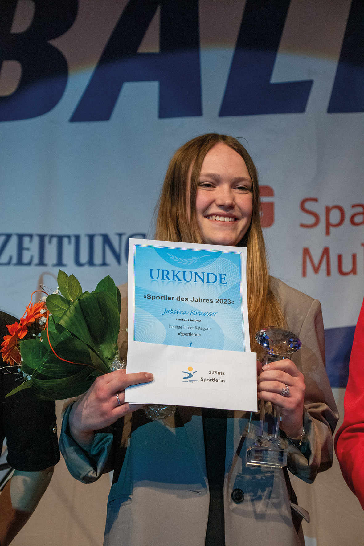 Sportlerball 2024Bevor die Herren sich an der Ehrung der besten Sportlerin, dem besten Sportler und der besten Mannschaft beteiligten, wurden jedoch noch engagierte Unternehmen für ihre großartige Unterstützung im Sport geehrt. Das waren in diesem Jahr: • Die Sauna am See, Markkleeberg