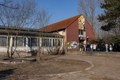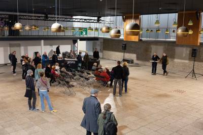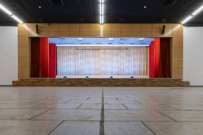 Bei einem geführten Rundgang konnte auch der ehemalige „agra-Club“ besichtigt werden. Rot getünchte Wände, schwarze Ledersitzgruppen und stellenweise bröselnder Putz – ein Charme längst vergangener Tage. Der Höhepunkt und zugleich Abschluss des Rundgangs fand sich wieder in Halle 4 im Obergeschoss: der Vorführraum. Wie in einer Zeitkapsel waren hier Kinoprojektoren, Mischpulte und Filmrollen zu entdecken.