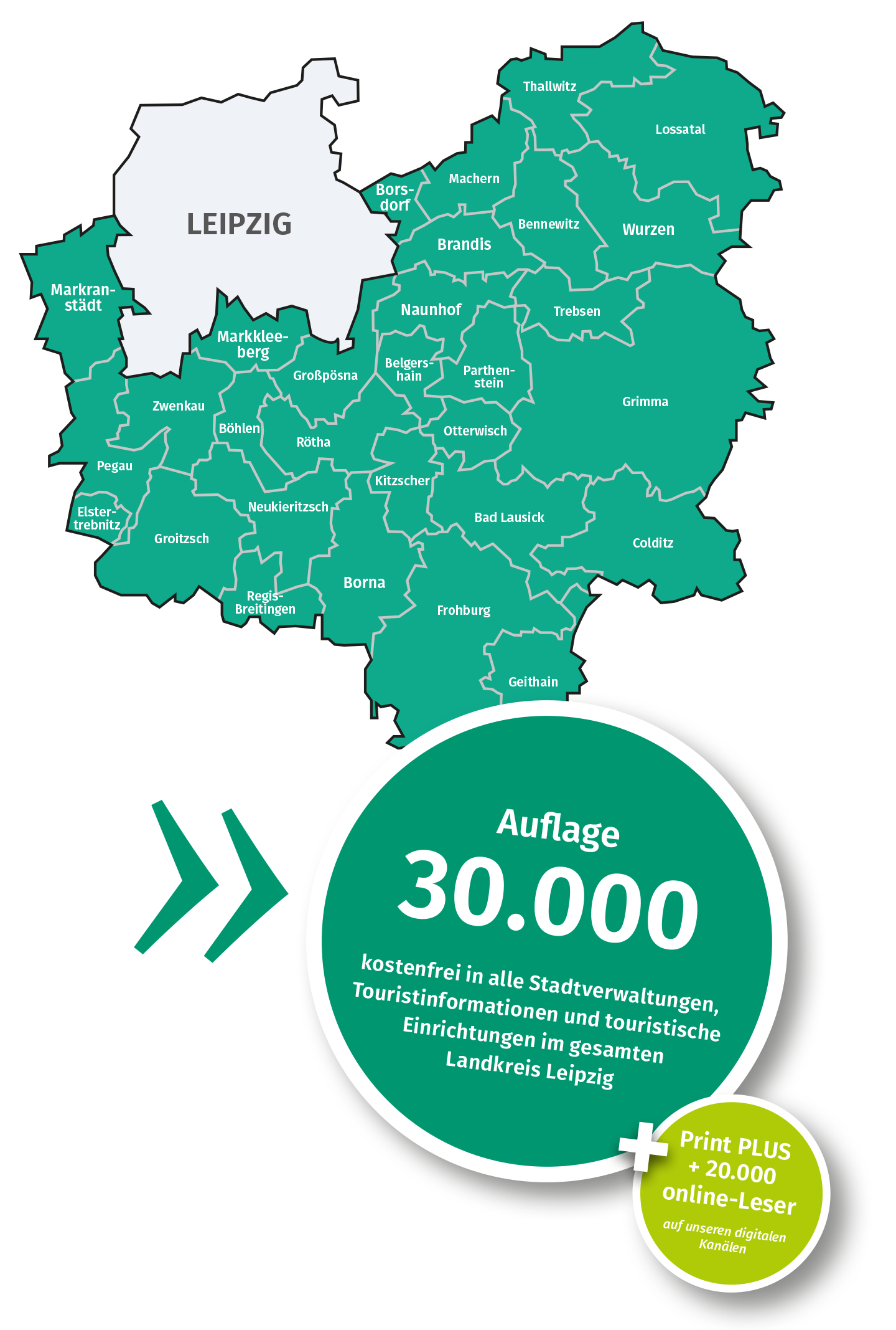 Seit über 21 Jahren begleiten wir mit attraktiven Publikationen die touristische Entwicklung im Landkreis Leipzig. Neben den spannenden und dynamischen Entwicklungen im Leipziger Neuseenland informieren wir unsere treuen Leser ebenso über die vielen Veranstaltungen und Anbieter in den angrenzenden ländlichen, sehr traditionsreichen touristischen Regionen des Leipziger Landes, so im Muldental, Kohrener Land, Altenburger Land oder in der Dübener Heide.