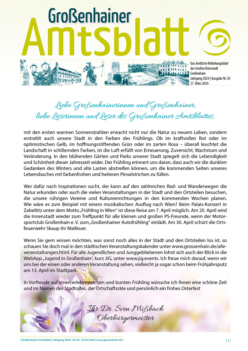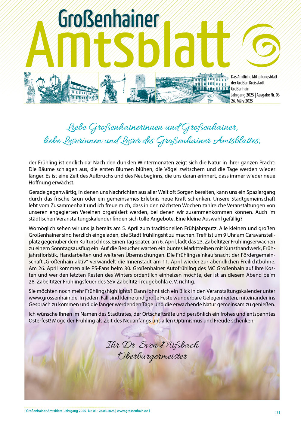Seit Jahren ist das Großenhainer Amtsblatt das meistgelesene Journal in Großenhain und somit für Werbekunden eine ausgezeichnete Marketingplattform.