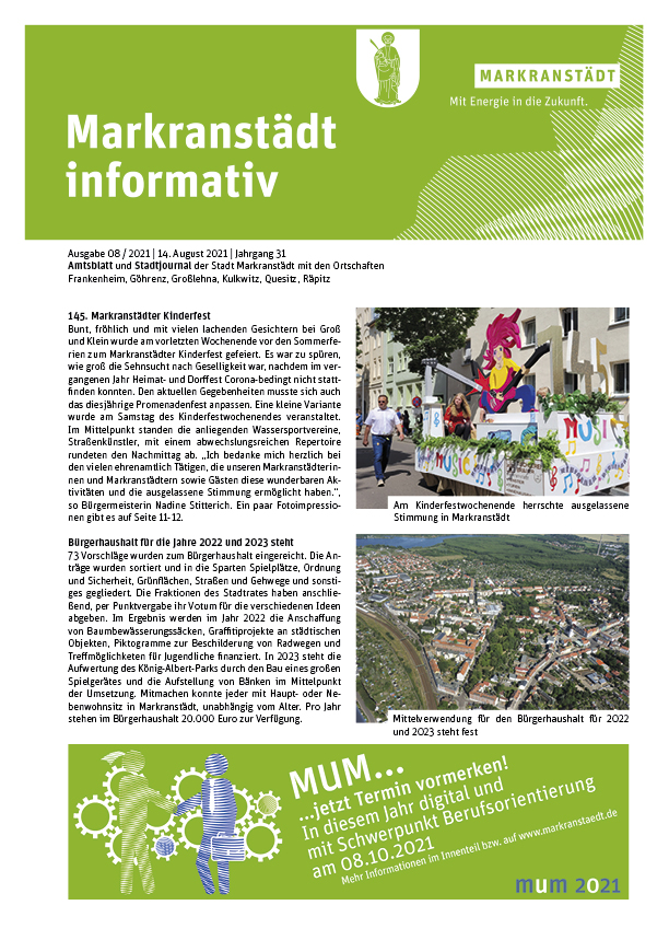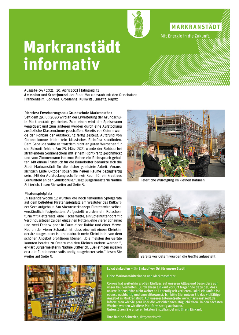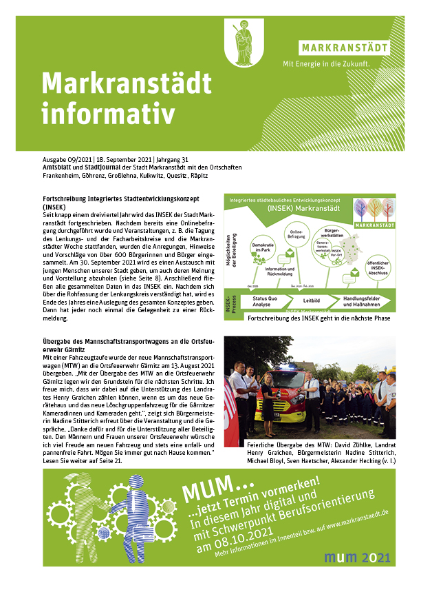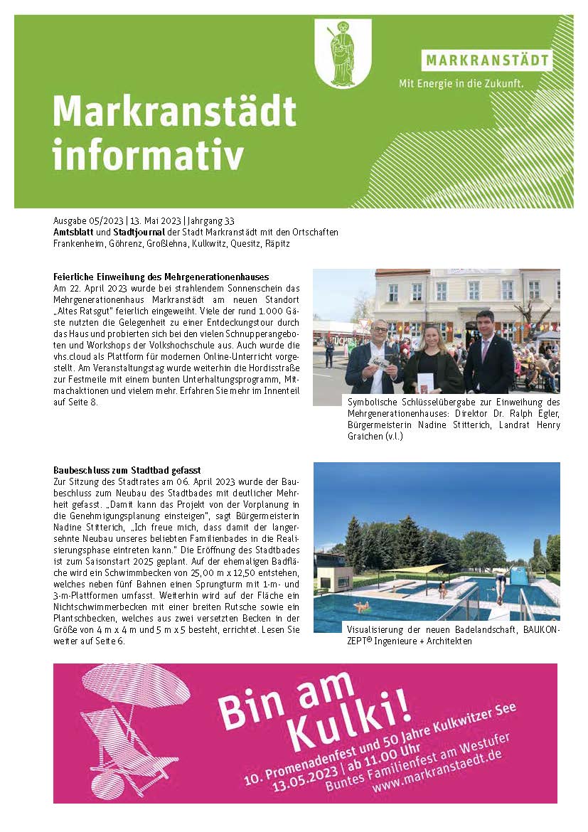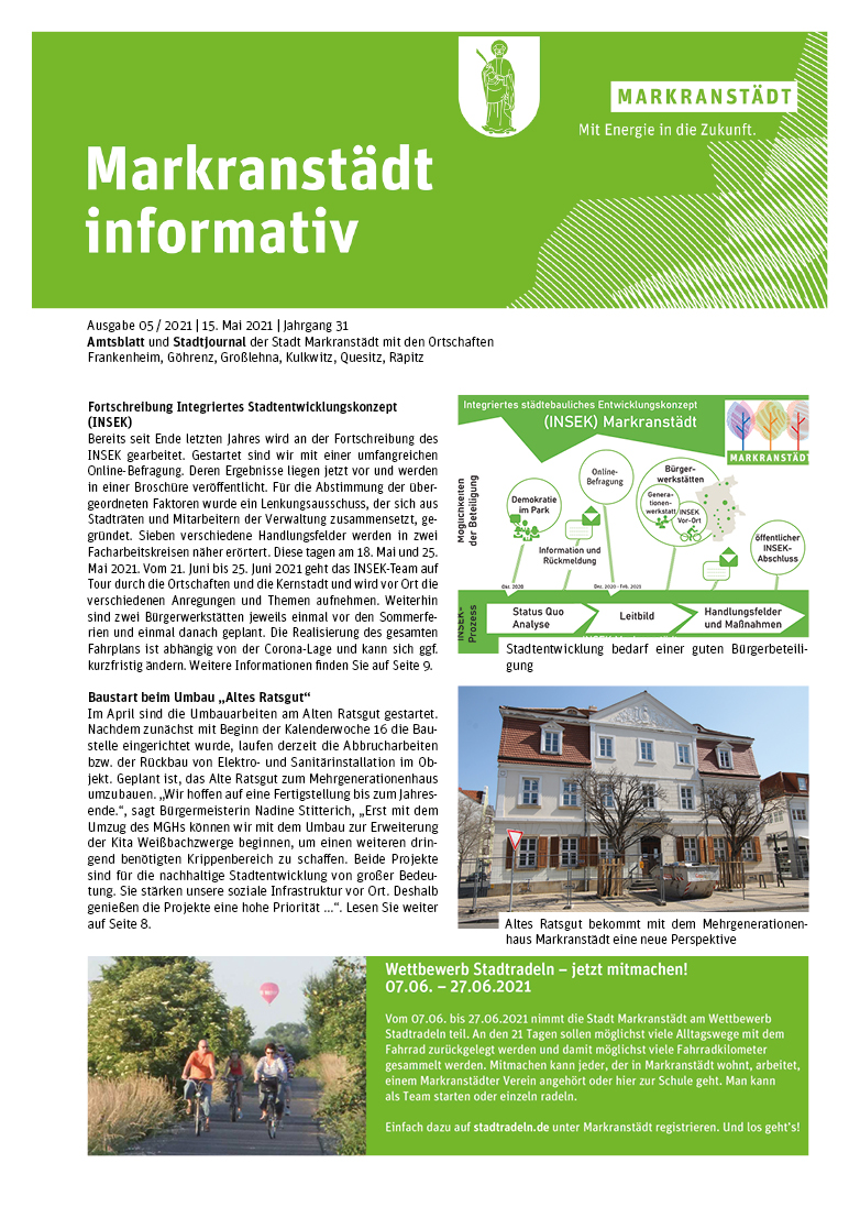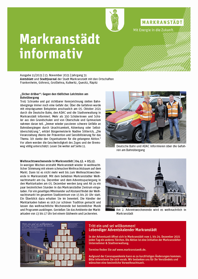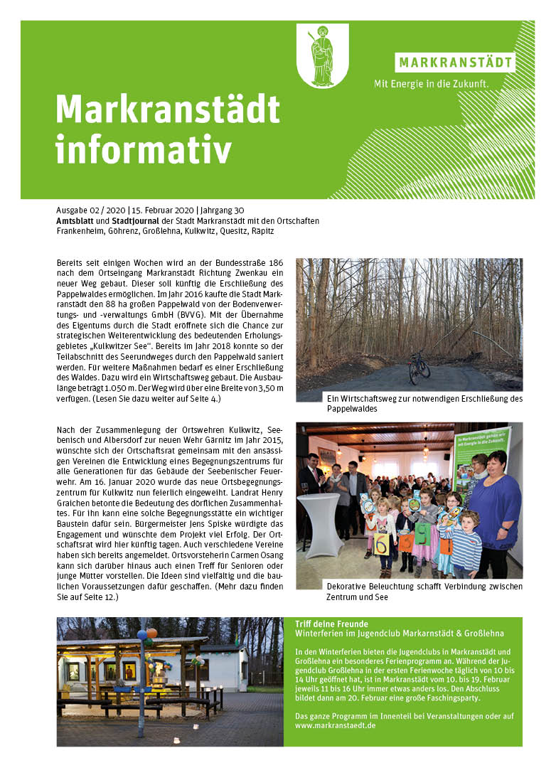 In den Kommunen schlägt das Herz der Landkreise. Ob städtische Informationen, Kultur, Freizeit, Vereine, Veranstaltungen oder Wirtschaft – in unseren Stadtjournalen widerspiegelt sich das pulsierende Leben in den Städten.