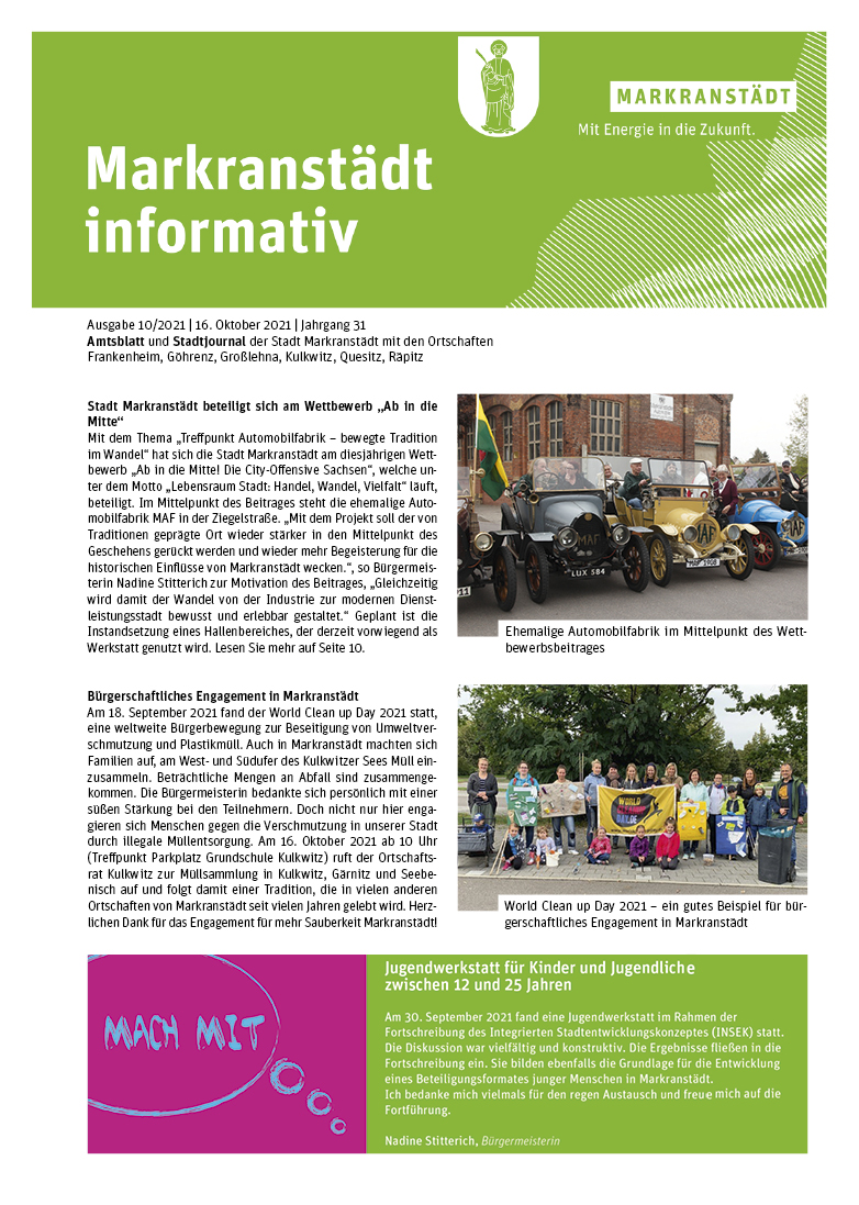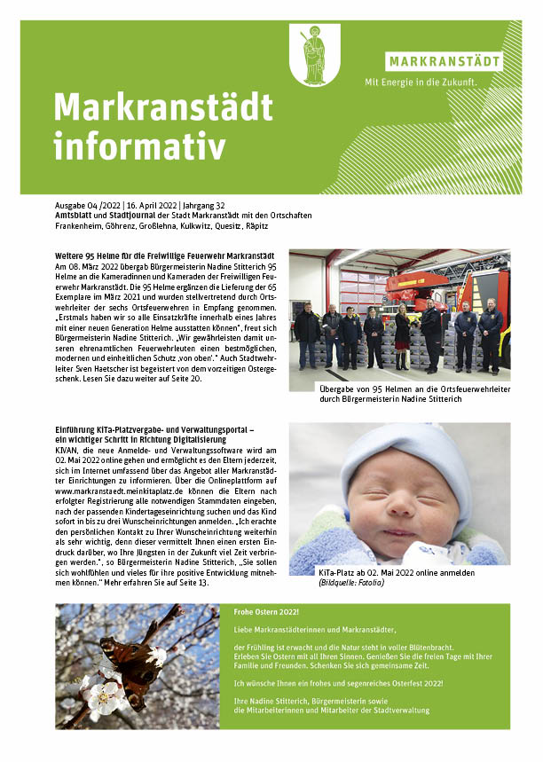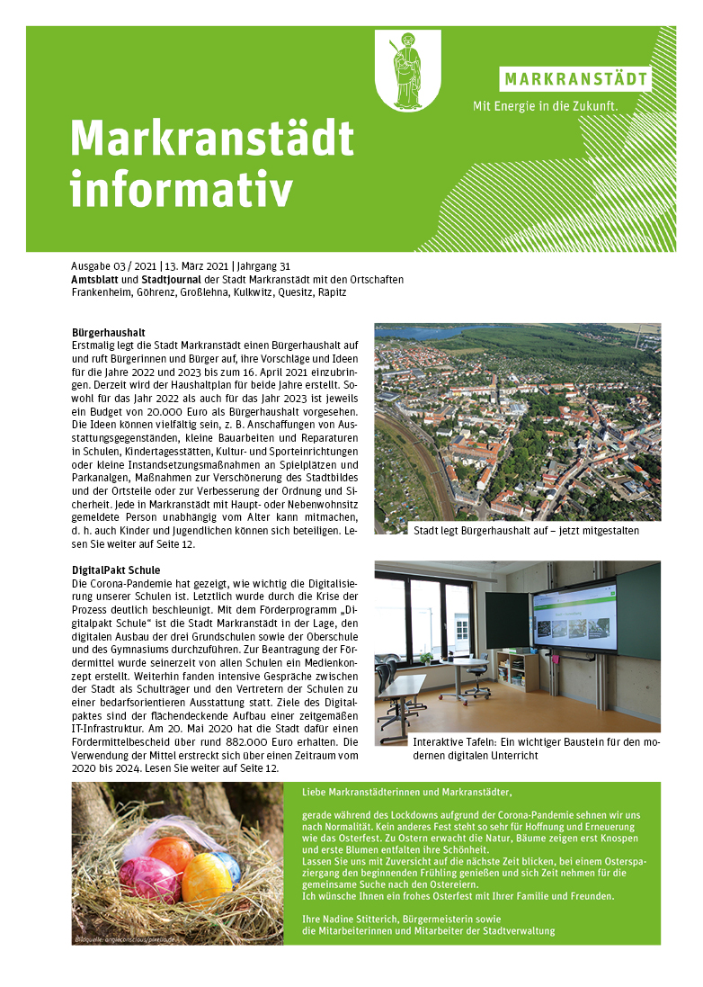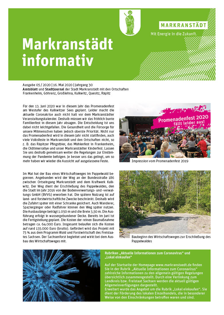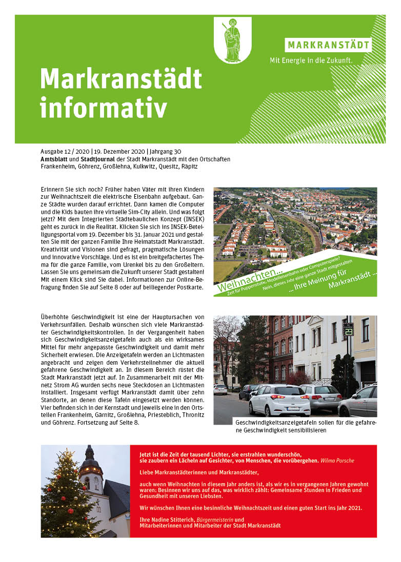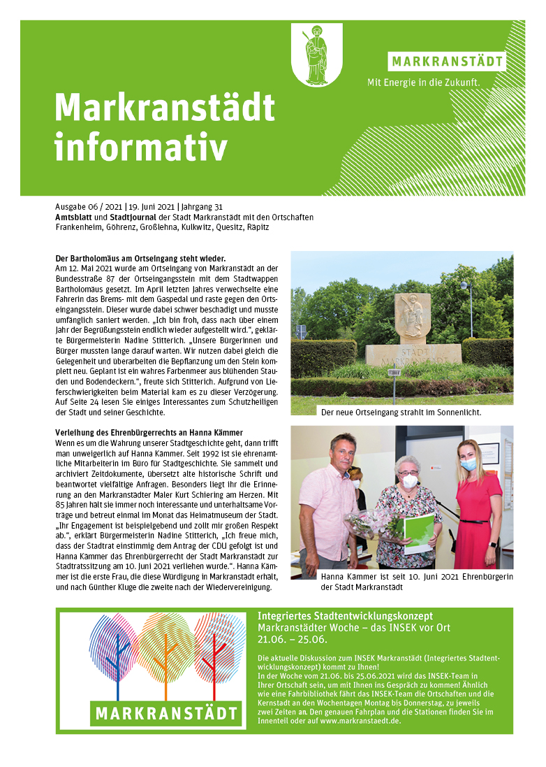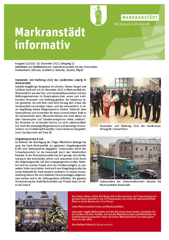 In den Kommunen schlägt das Herz der Landkreise. Ob städtische Informationen, Kultur, Freizeit, Vereine, Veranstaltungen oder Wirtschaft – in unseren Stadtjournalen widerspiegelt sich das pulsierende Leben in den Städten.