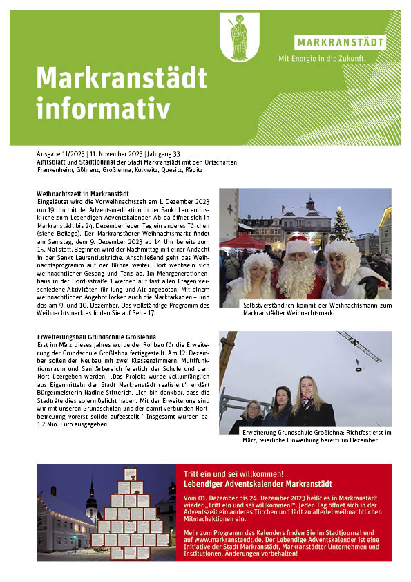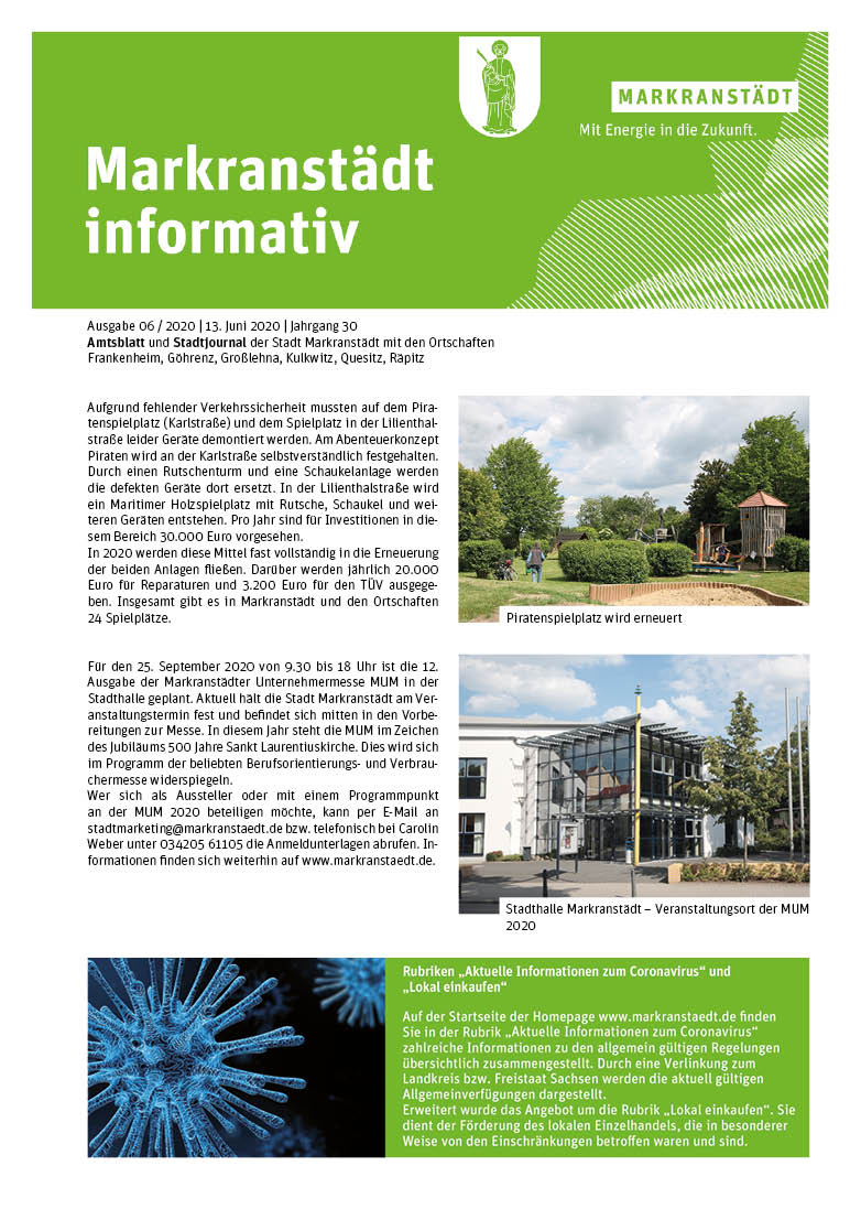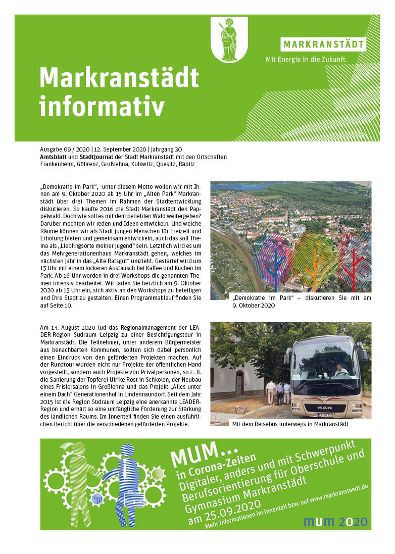 Aufgrund seiner Informationsvielfalt ist das Markranstädter Stadtjournal das meistgelesene und beliebteste Journal in Markranstädt und somit für Werbekunden eine ausgezeichnete Marketingplattform.