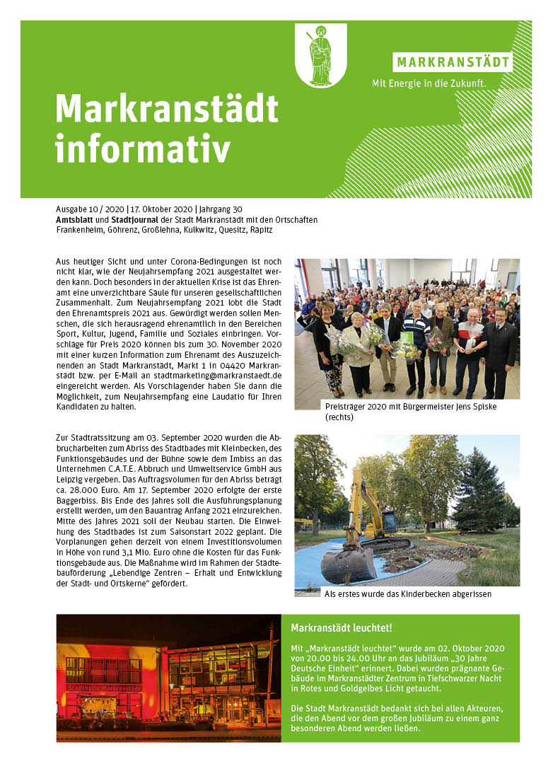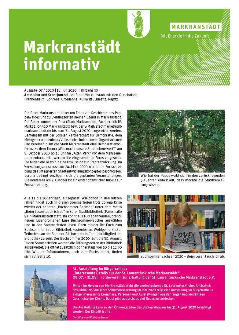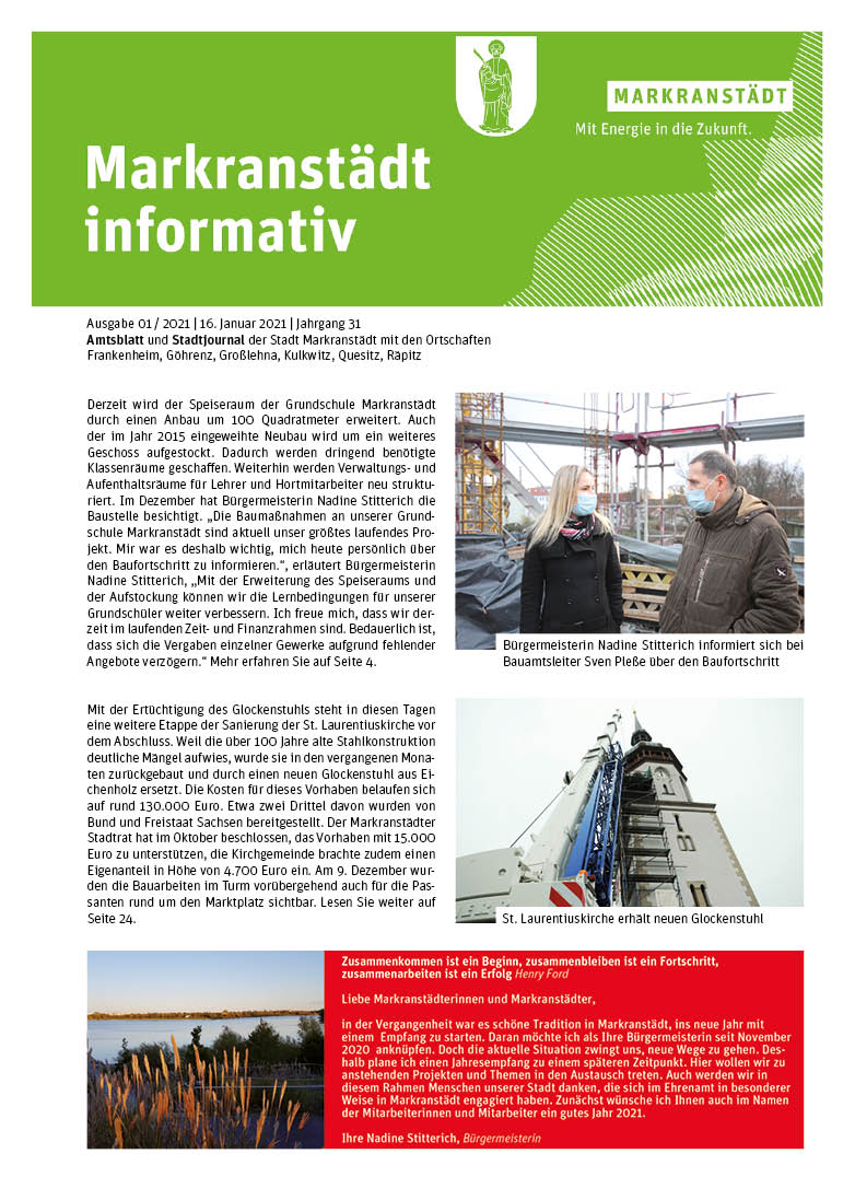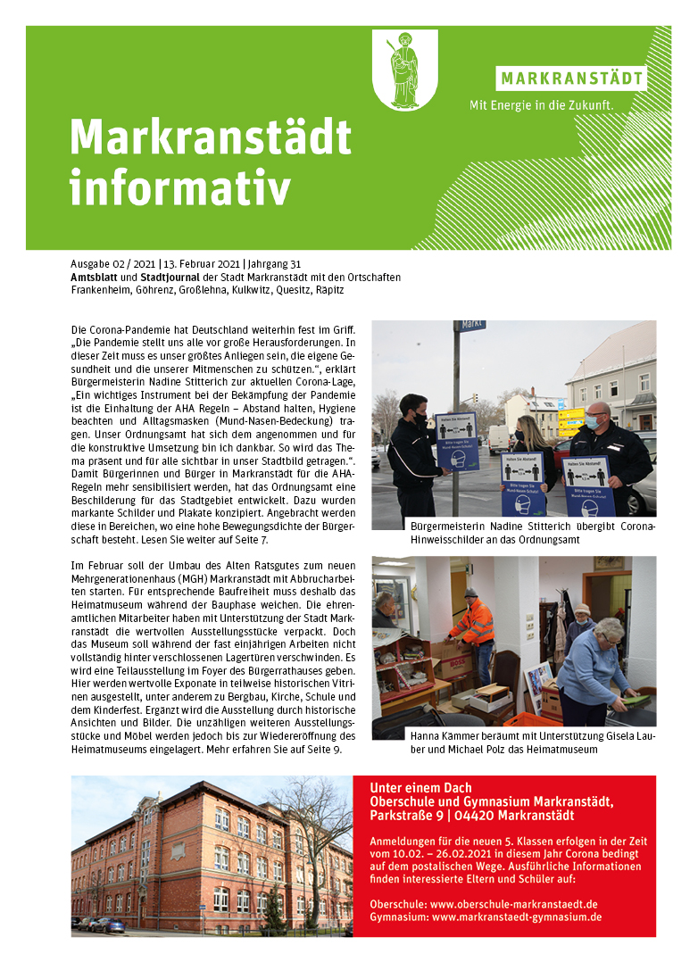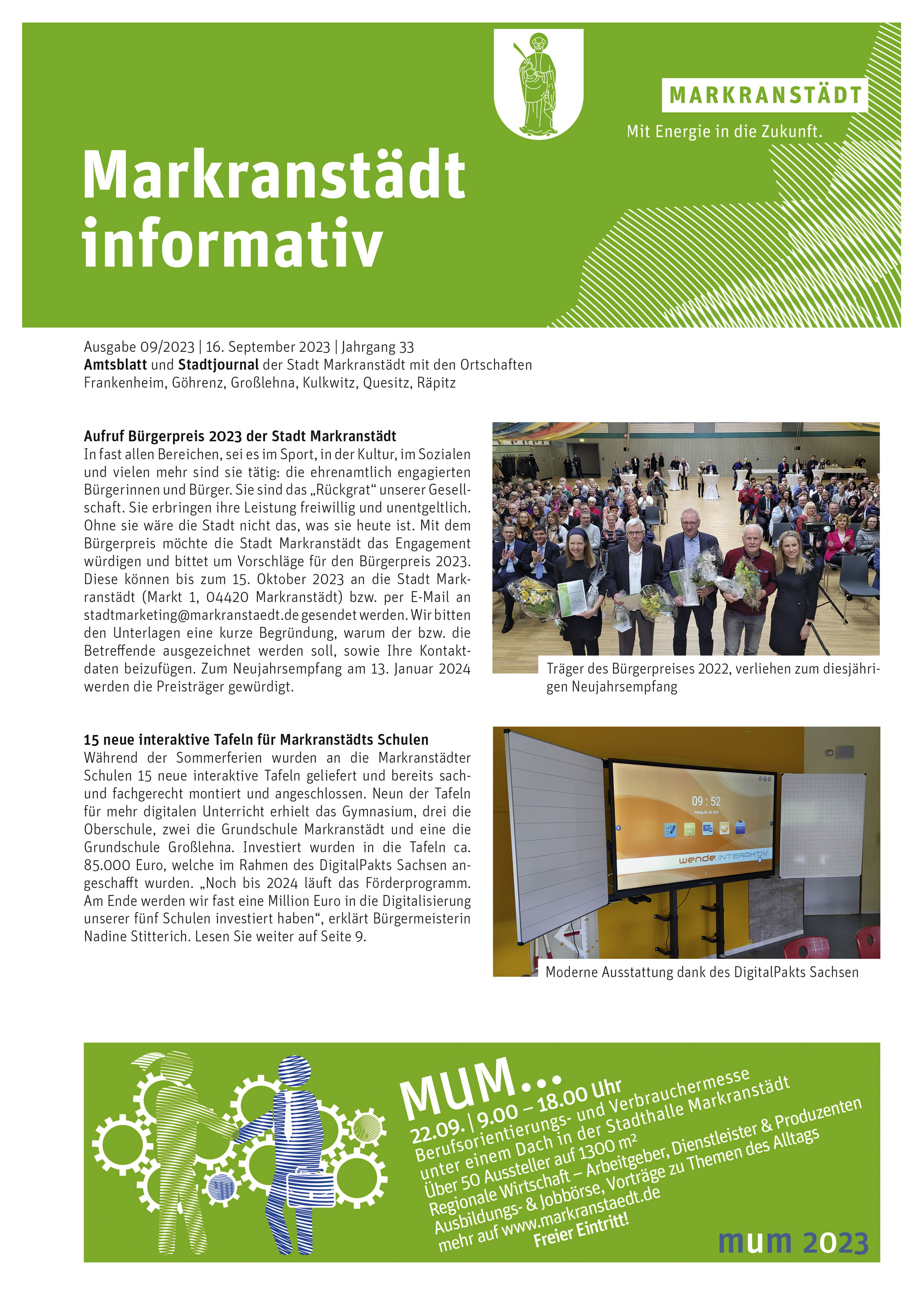 Auf 40 bis 56 Seiten informieren Stadtverwaltung und Verlag einmal im Monat über die aktuellen Ereignisse in Markranstädt.